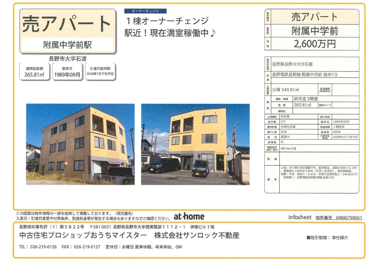 長野電鉄:桐原駅~徒歩10分、附属中学前~徒歩7分の好立地!