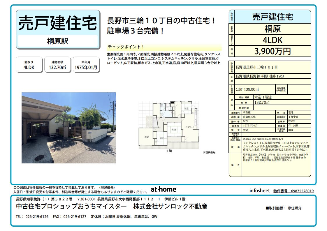 【中古住宅】長野市三輪10丁目 4LDK